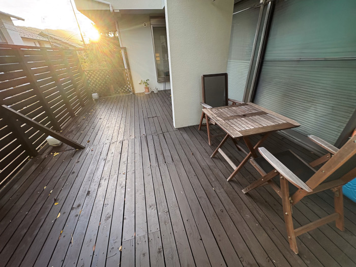 まず取り掛かるのは経年劣化で朽ちかけている天然木のウッドデッキと目隠しフェンスの解体です。