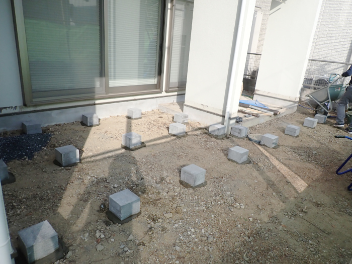 今回は既存の天然木ウッドデッキ解体後に木樹脂のウッドデッキを新たに設置していきます。