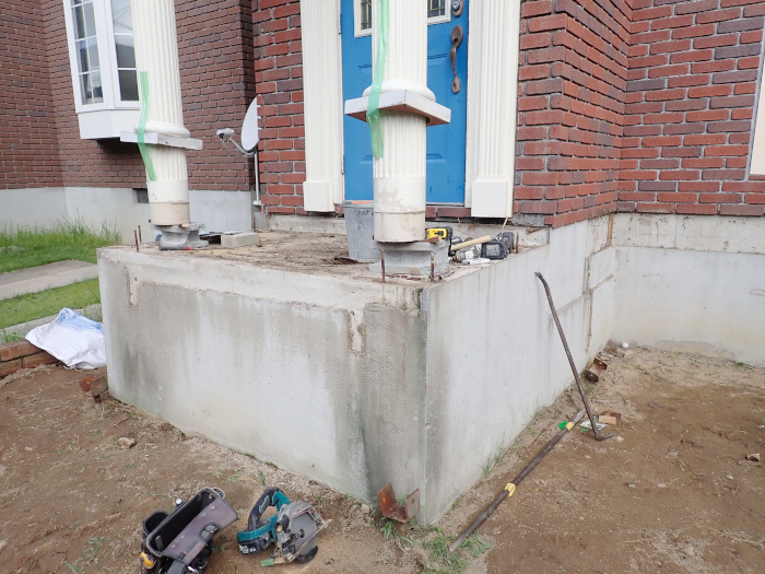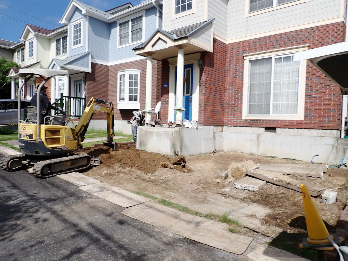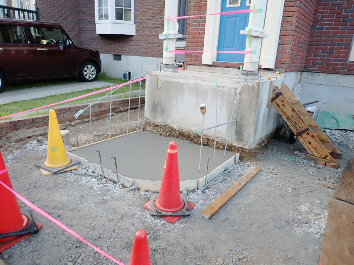 その後は天然木の階段ステップからレンガと洗い出しのステップにするための下地造り。