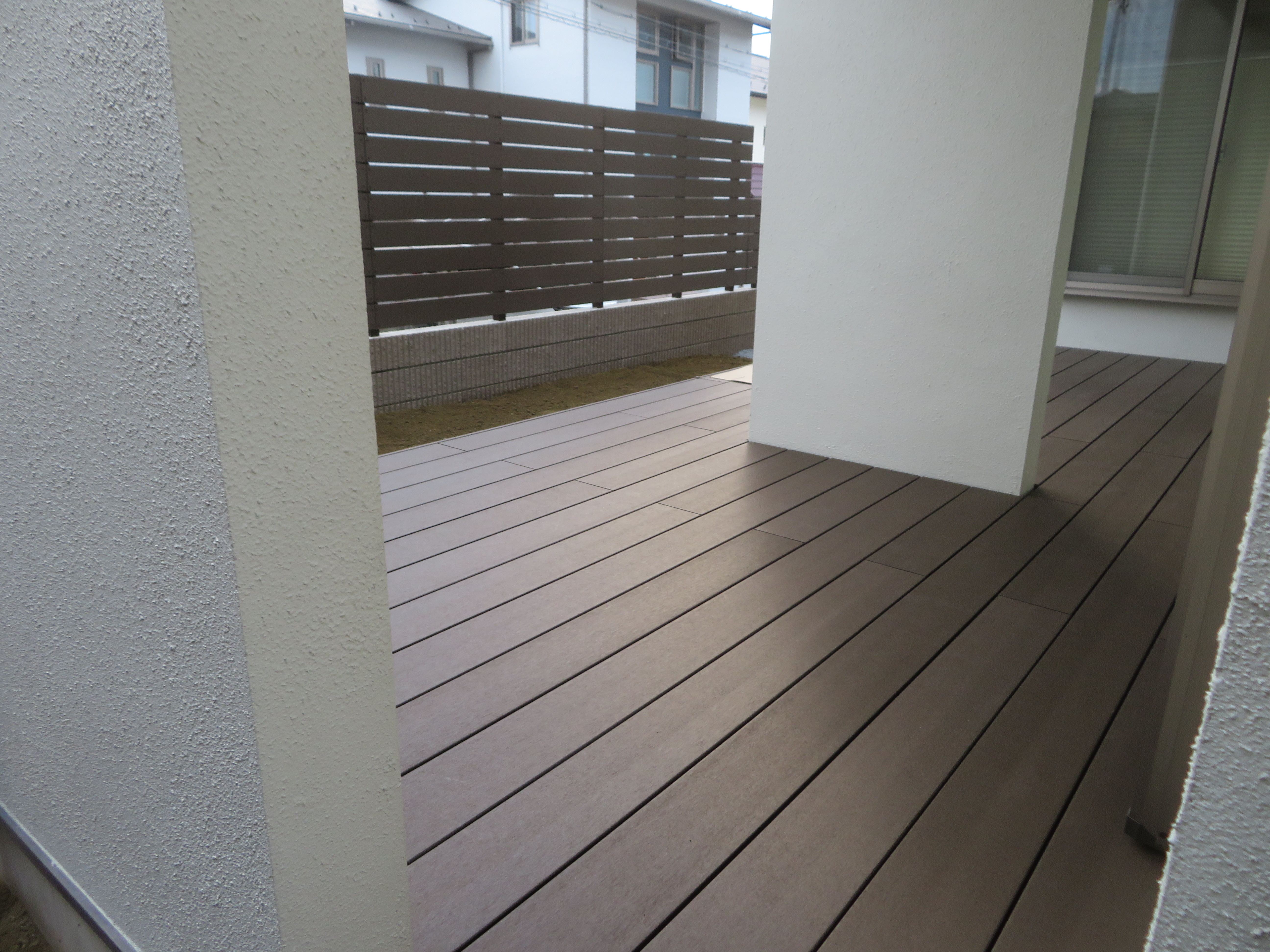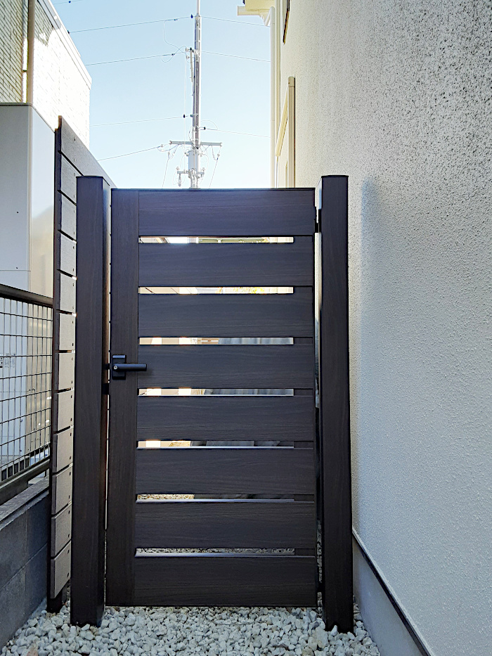 天然木は温かみがありナチュラルでとっても素敵なのですがどうしても定期的なメンテが必要になってきますので、今回は一部の目隠しフェンスとウッドデッキを木樹脂の板材を使って工事させていただきました。