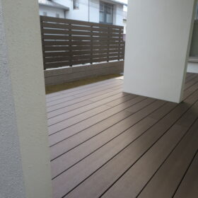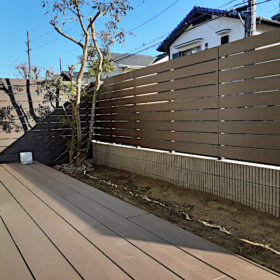 A様邸は既存目隠しフェンスとウッドデッキを天然木でされておりましたが経年劣化で所々朽ちてしまい今後の事も考えて木樹脂材でリフォームされたいとの事でご相談を頂きました。